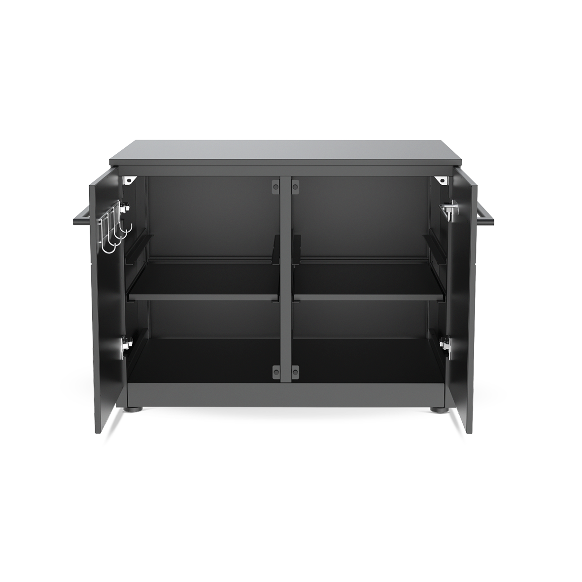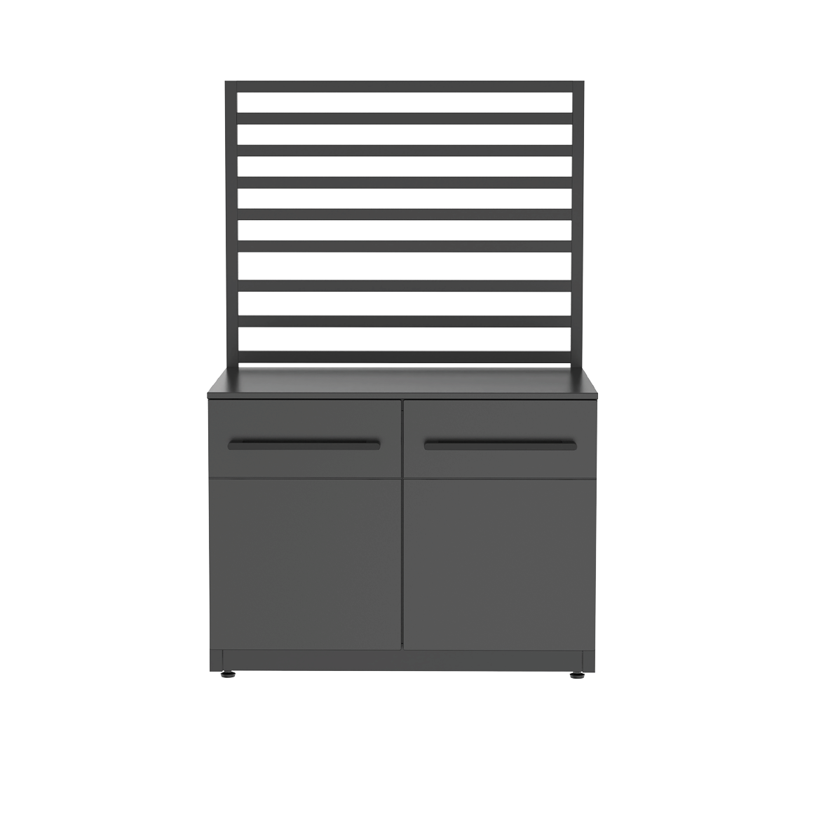 - Hochwertige Materialien: Verzinkter, mattschwarz pulverbeschichteter Stahl mit langlebigen Hochdrucklaminat-Türen und robusten Aluminiumgriffen.