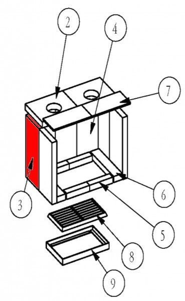 Seitenstein / Brennraumstein / Feuerraumstein / Kaminofenstein / Brennofenstein / Ofenstein / Holzofenstein
