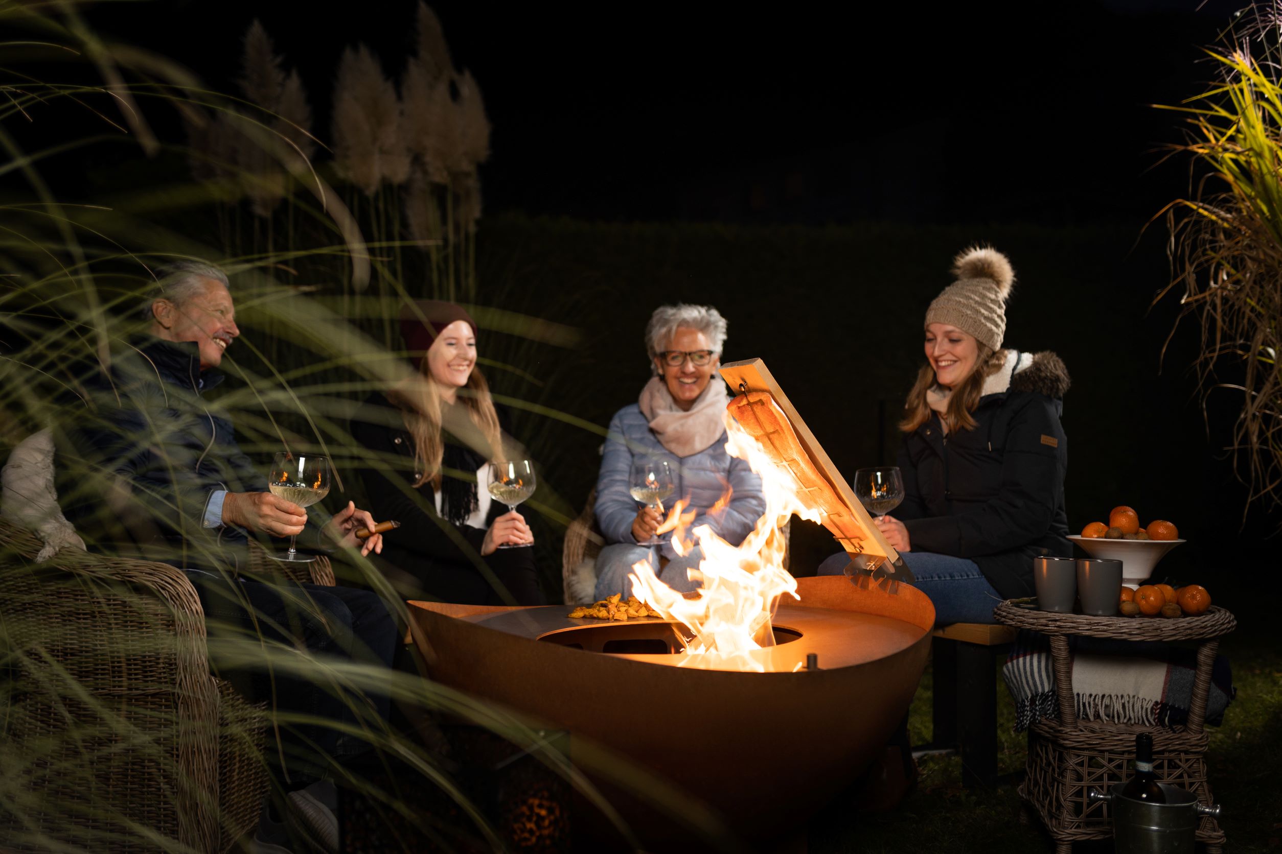 Das Gartenfeuer „WAVE“ verzaubert durch die geschwungenen Formen in Kombination mit seiner ovalen Feueröffnung. Dieses stilvolle Gartenaccessoire verleiht dem Outdoor-Bereich aus jedem Blickwinkel eine einzigartige und faszinierende Atmosphäre.