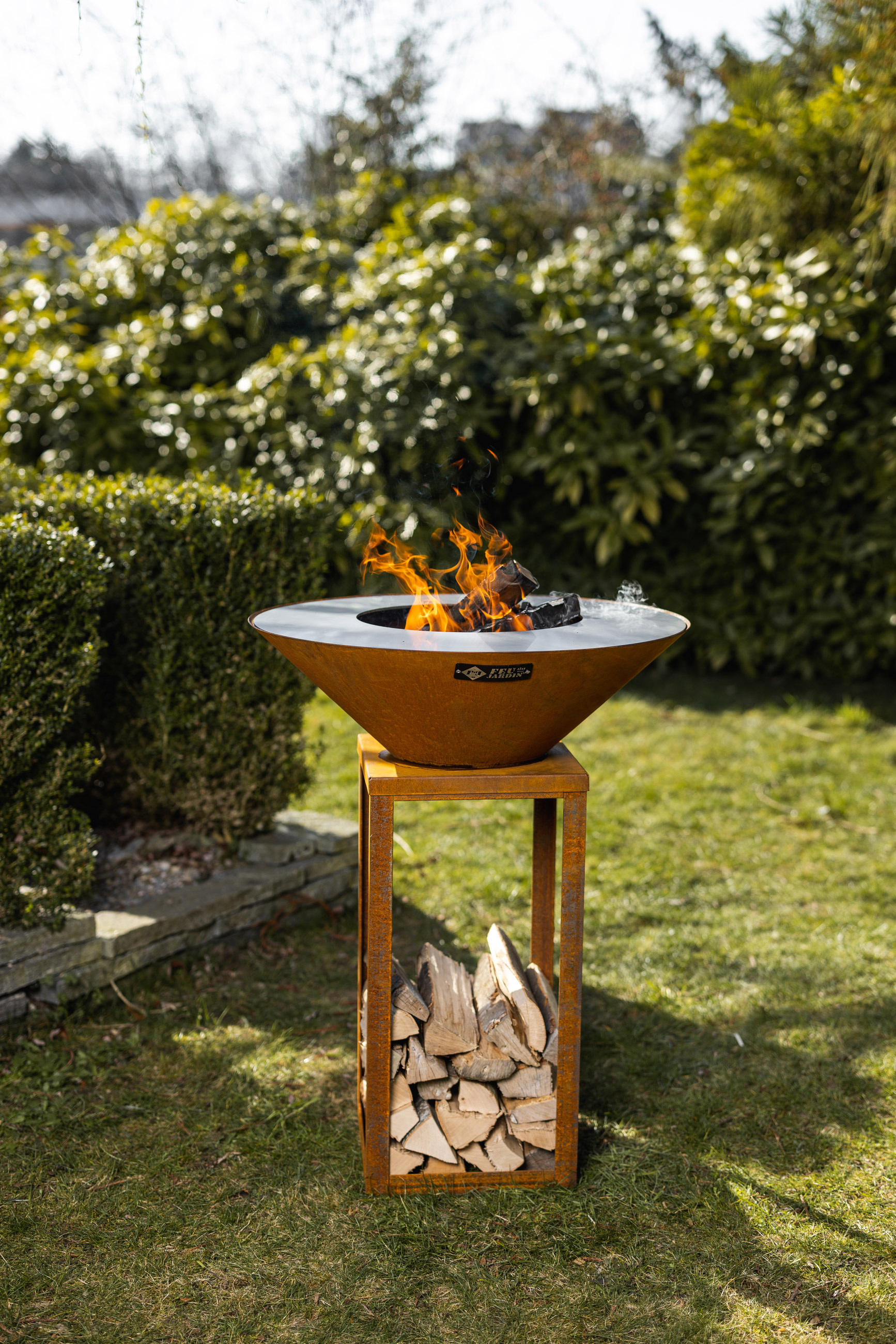 Darüber hinaus überzeugt der FYRO 80 nicht nur durch seine Funktionalität, sondern auch durch seine ästhetische Raffinesse. Im Untergestell lässt sich das benötigte Holz nicht nur äußerst praktisch aufbewahren, sondern auch dekorativ präsentieren. So wird das Feuer zu einem eindrucksvollen Element im Garten oder auf der Terrasse.