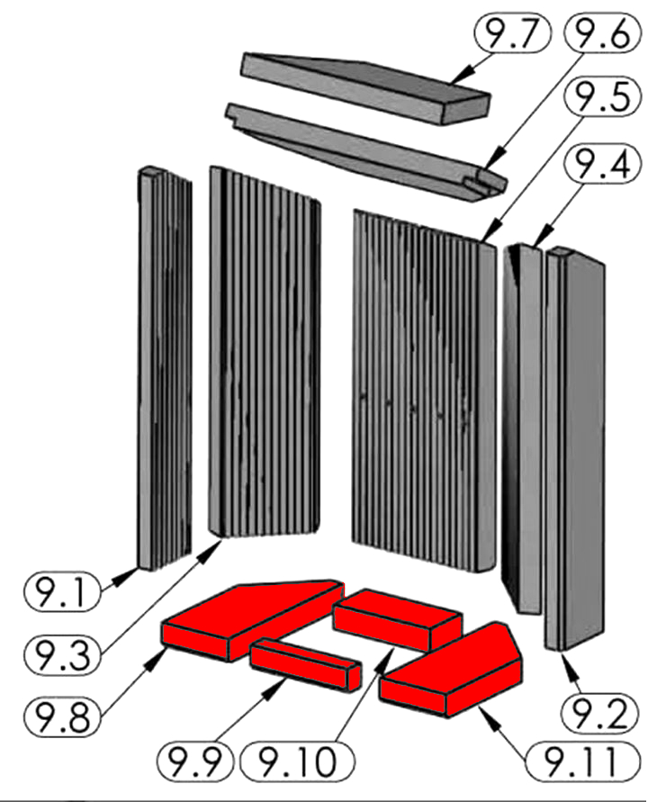 - Bodenstein Set, liegende Brennraumsteine Set