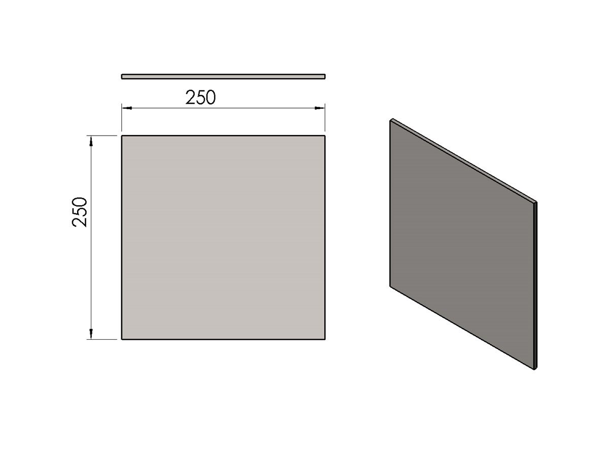 - Maße (B/L/H) 250 mm x 250 mm x 4 mm