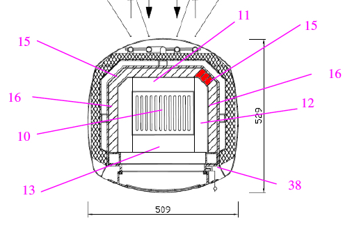 Original Seitenstein rechts hinten für den Kaminofen Wamsler Aquarello KF 108